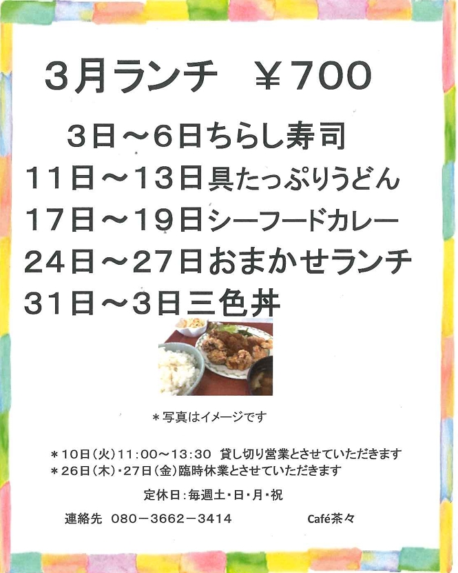 3. Café茶々3月週替わりランチメニュー