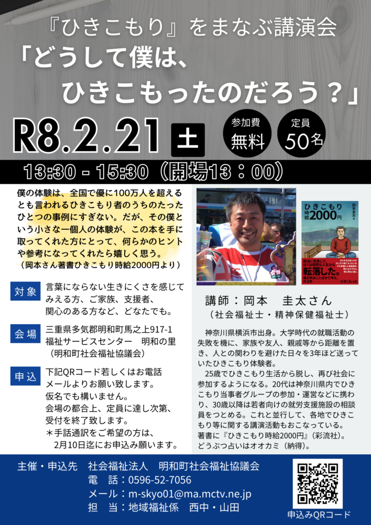 「ひきこもり」をまなぶ講演会のお知らせ